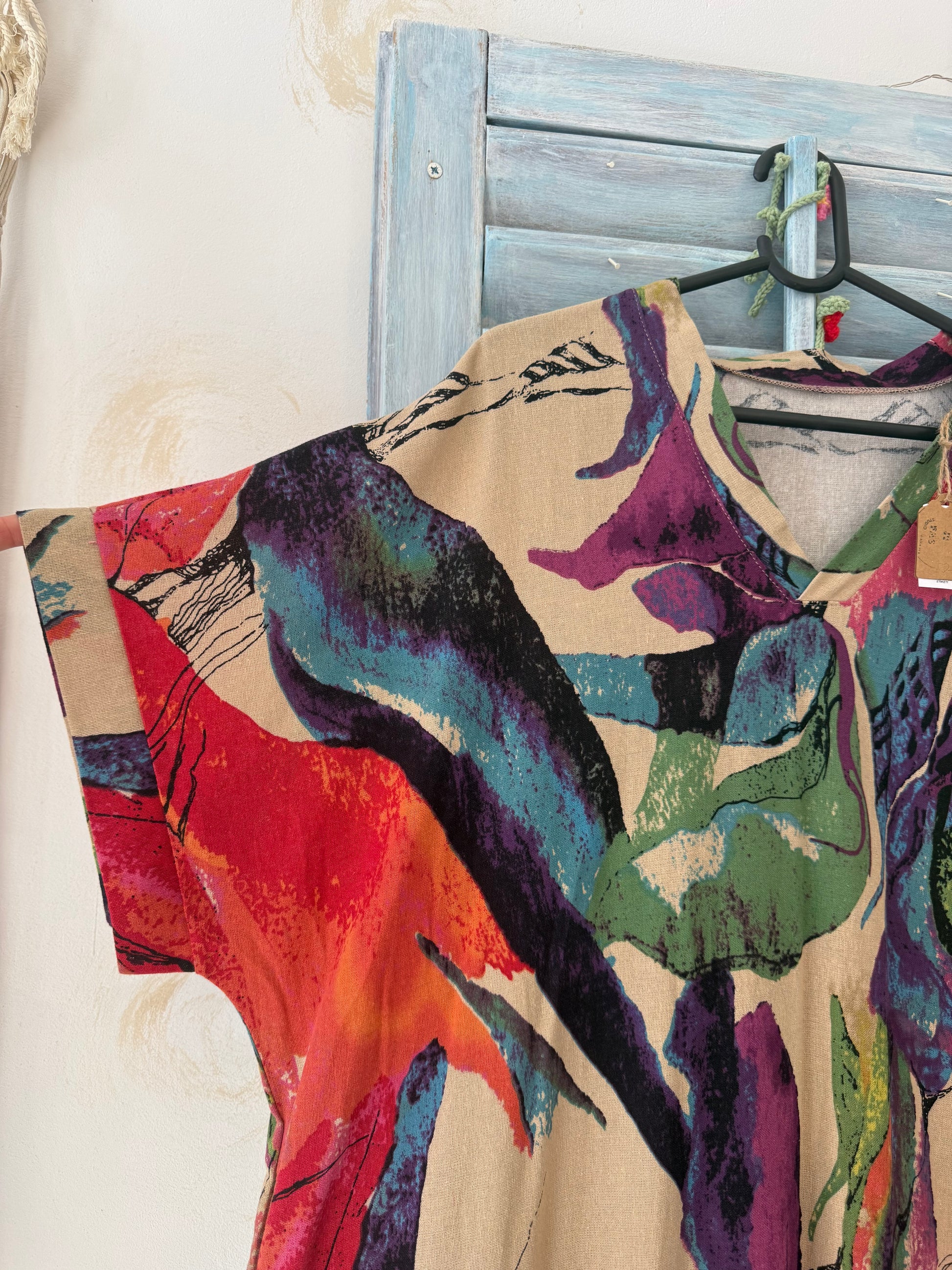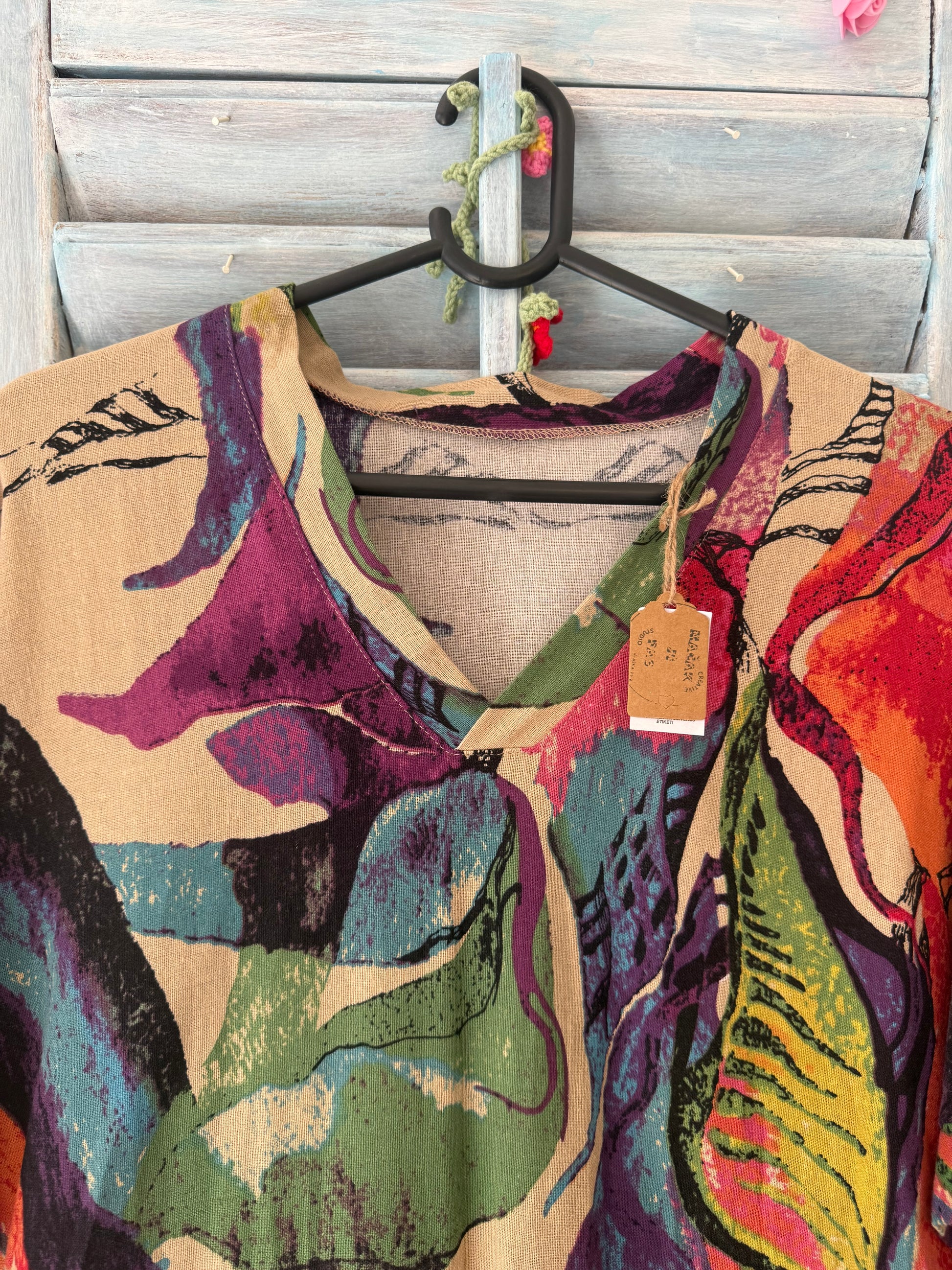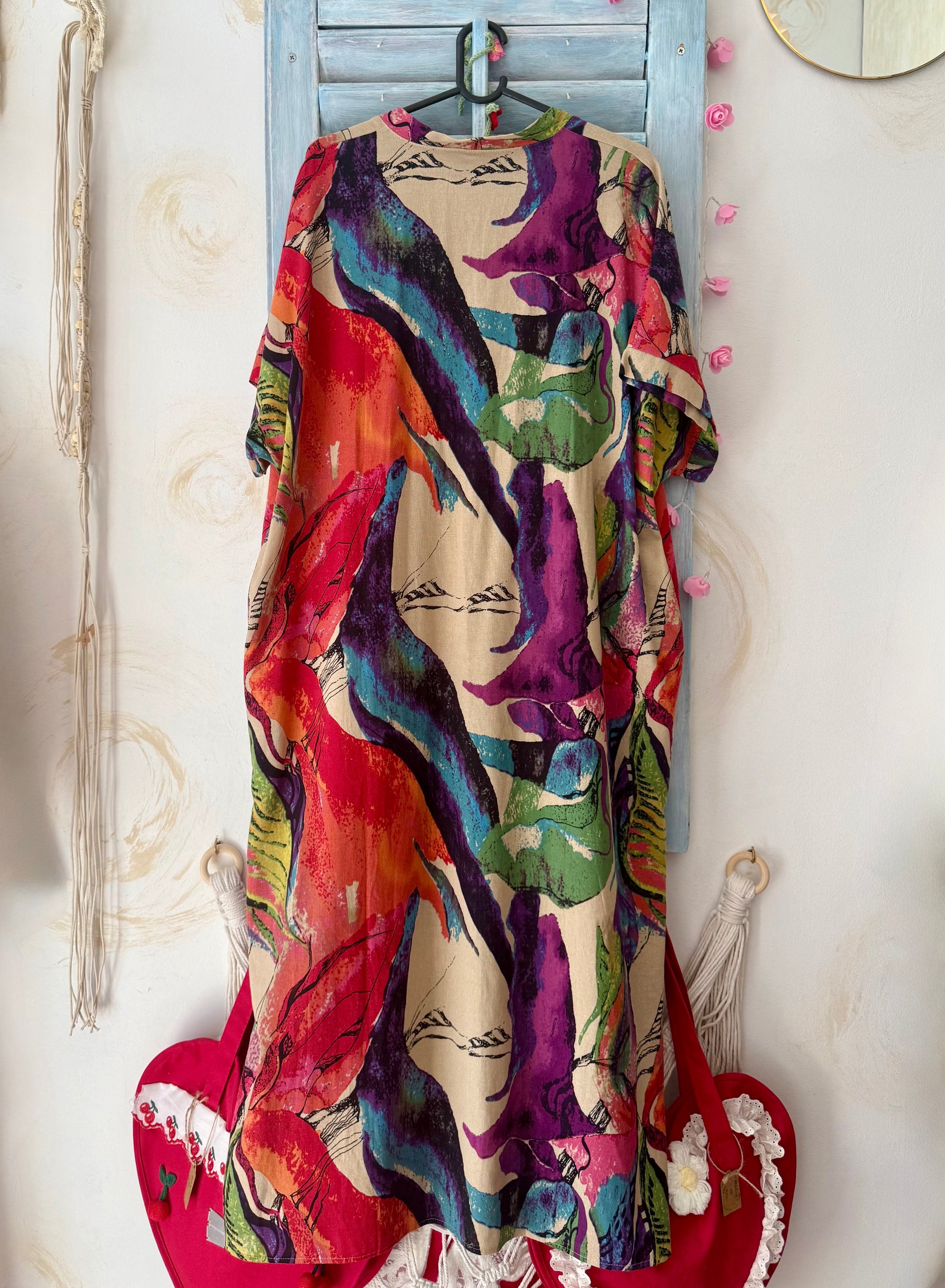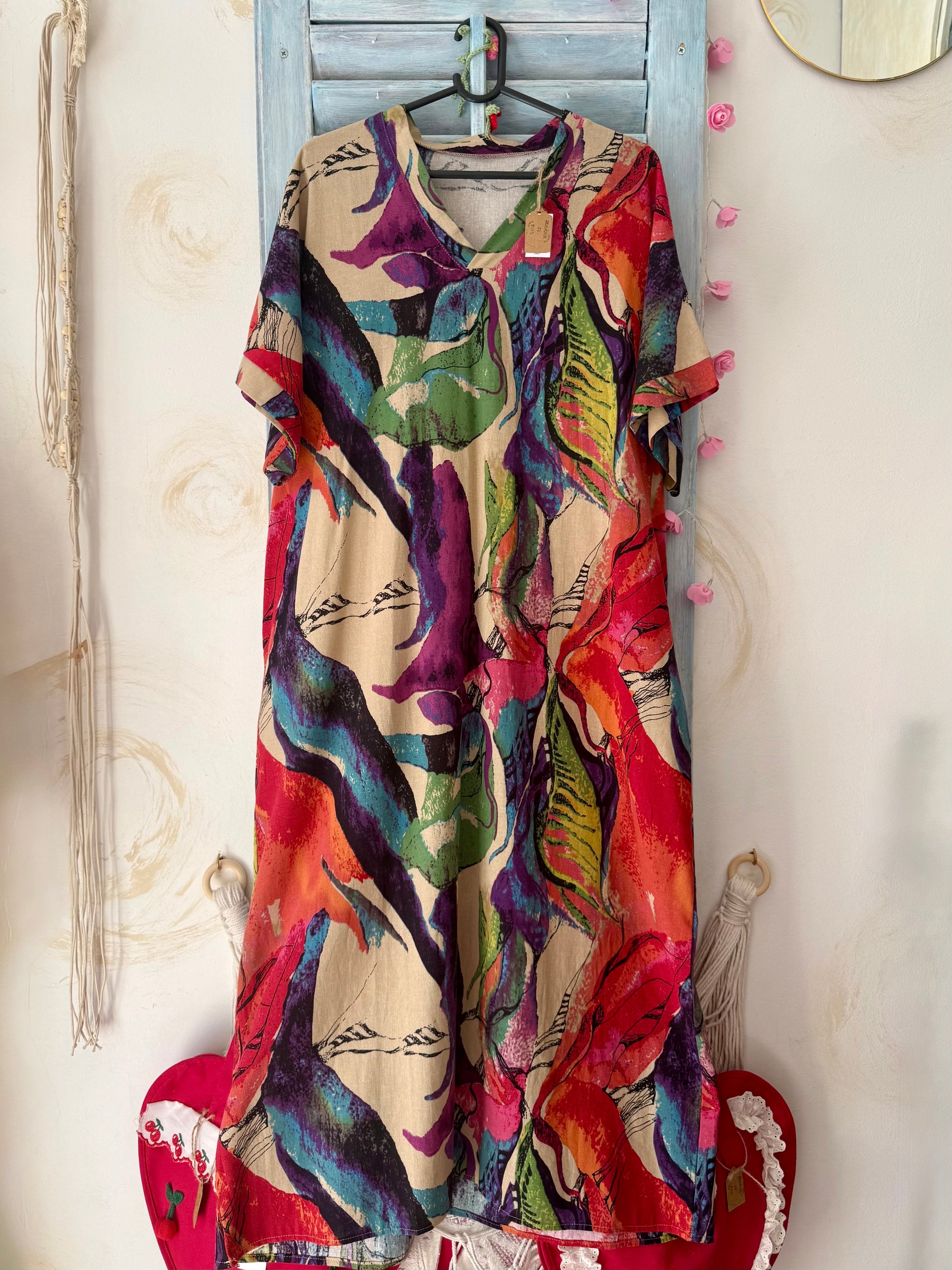 Color kaftan haljina ima sve boje i 2 džepa, a zahvaljujući gustom tkanju nosiva je cijele godine.