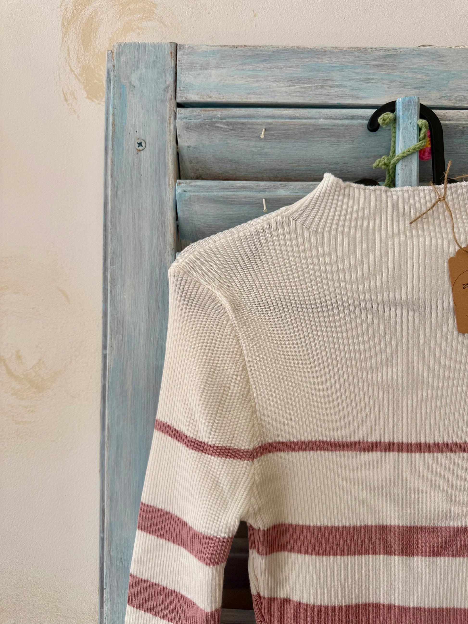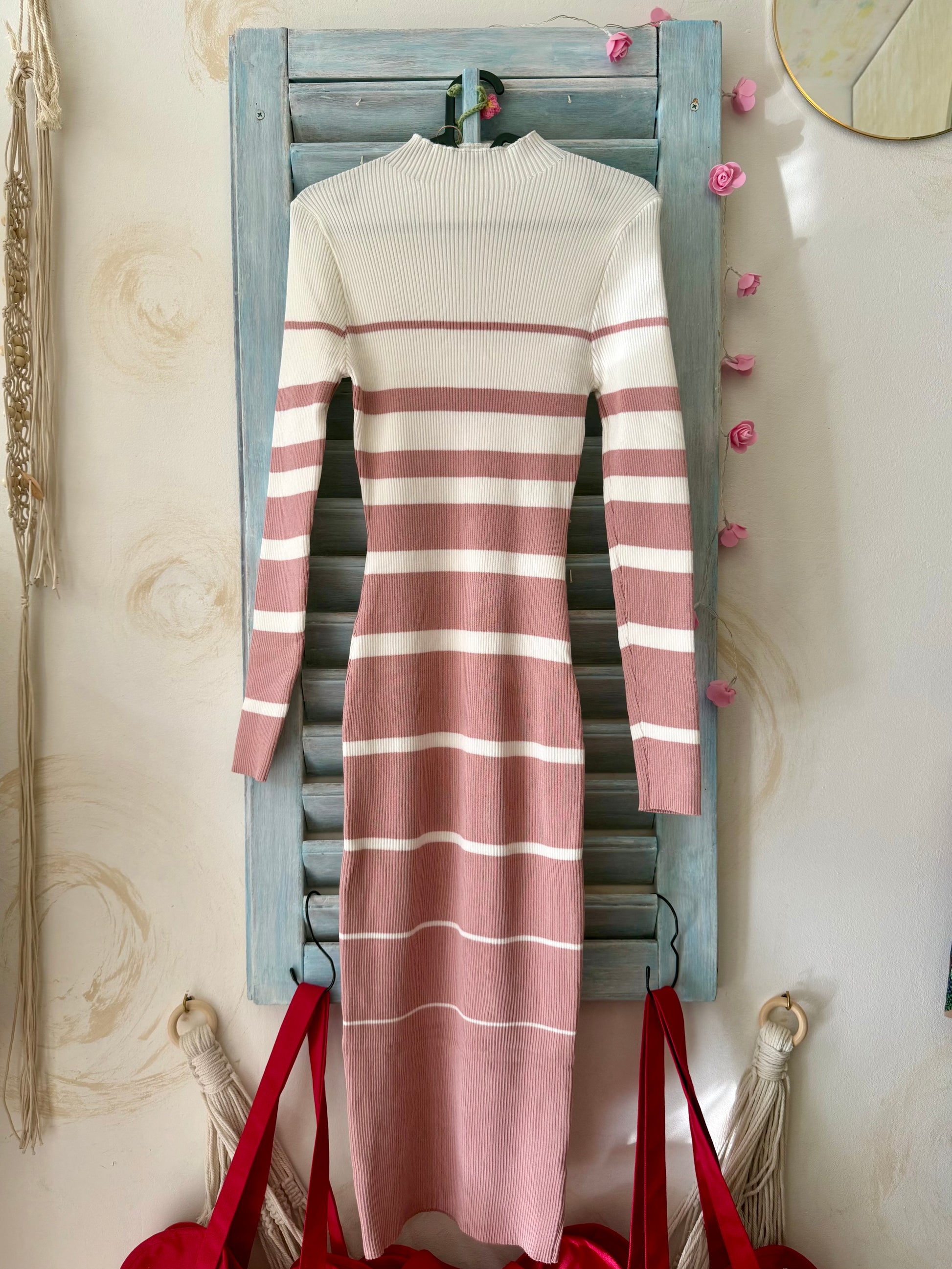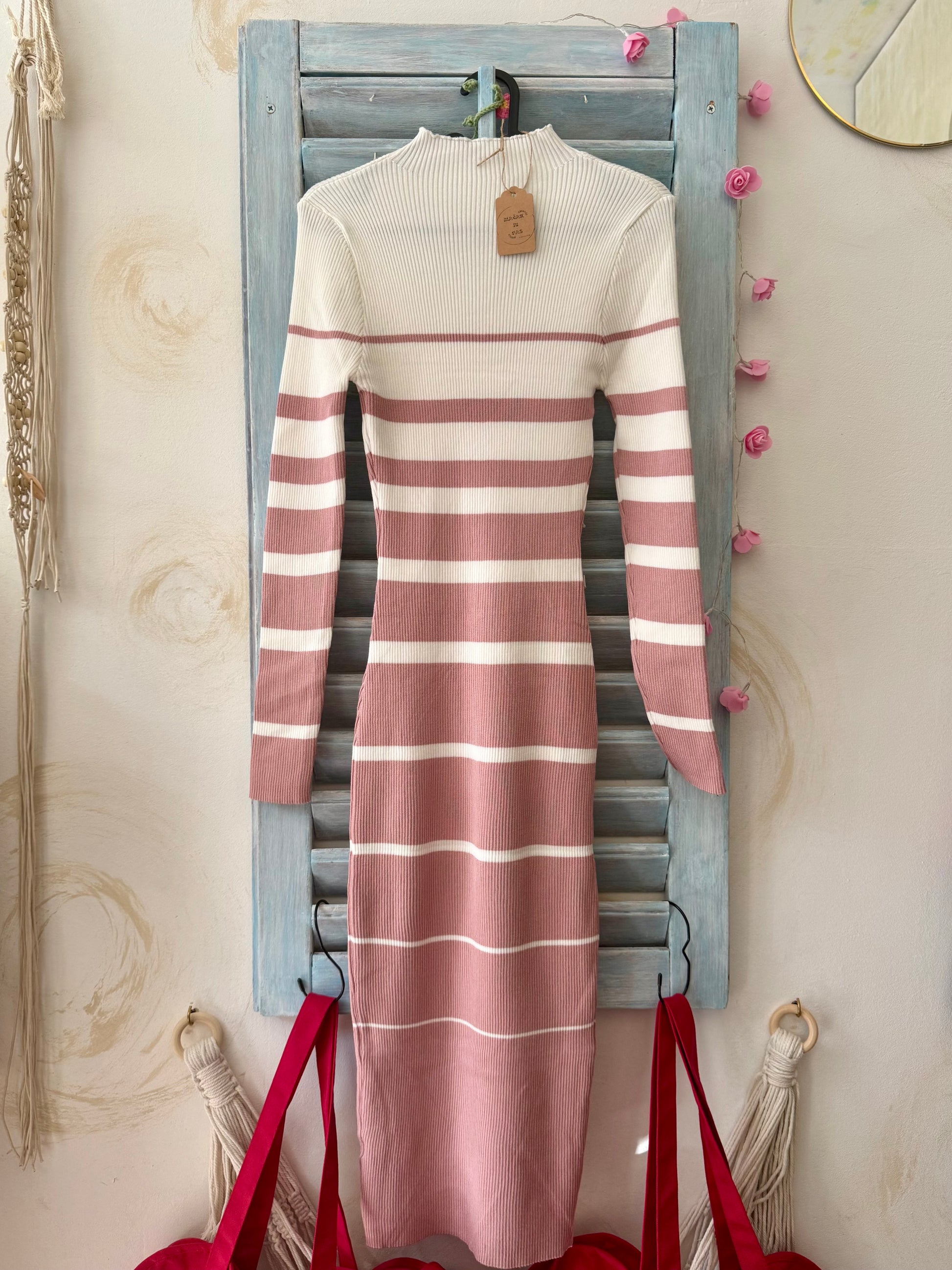 Prugy je rastezljiva haljina rebrastog tkanja koja se, kao i druge Mačkove jako rastezljive haljine savršeno prilagodava tijelu. Raspored prugica naglašava ramena dok vizualno sužava donji dio tijela.