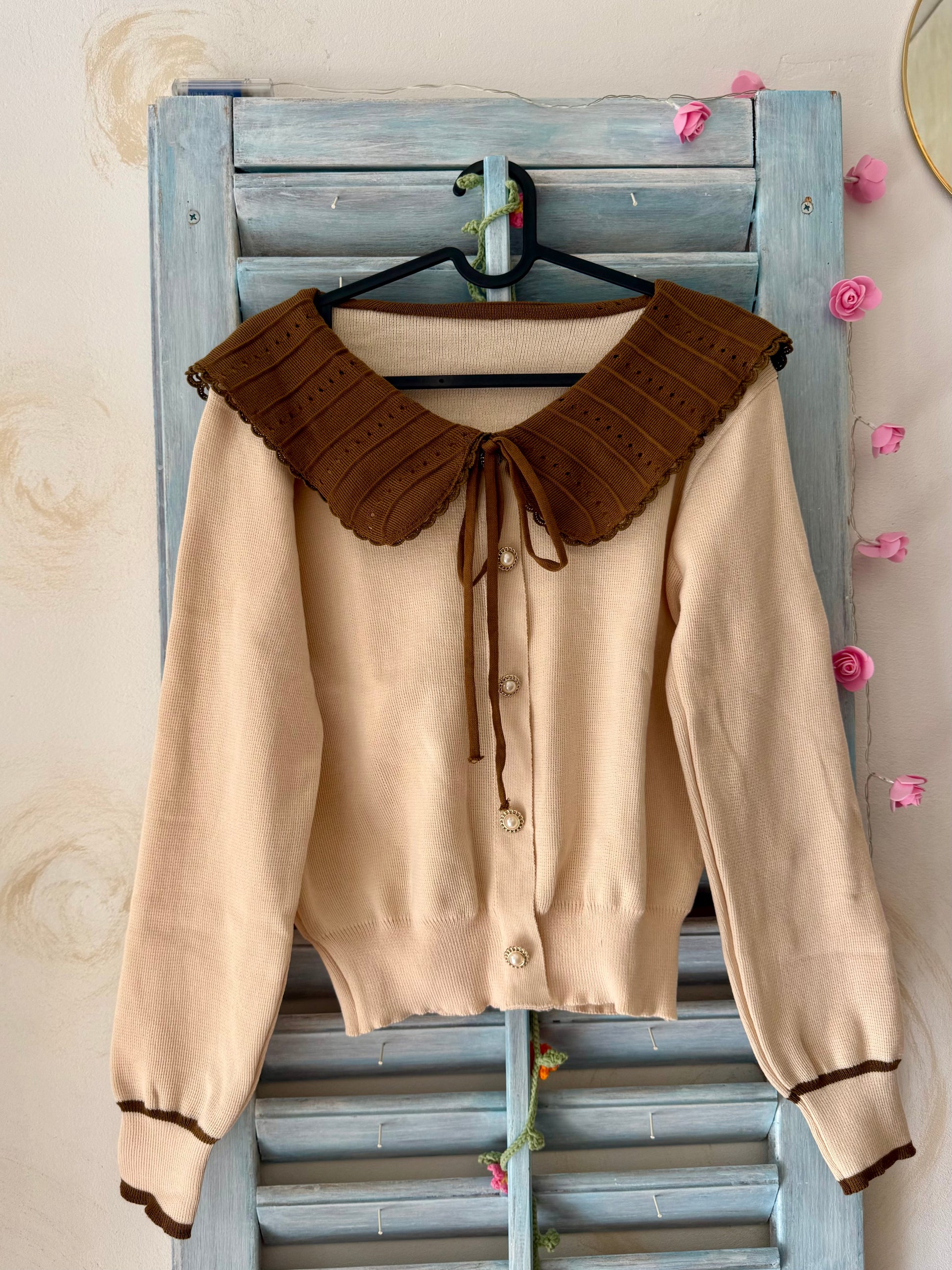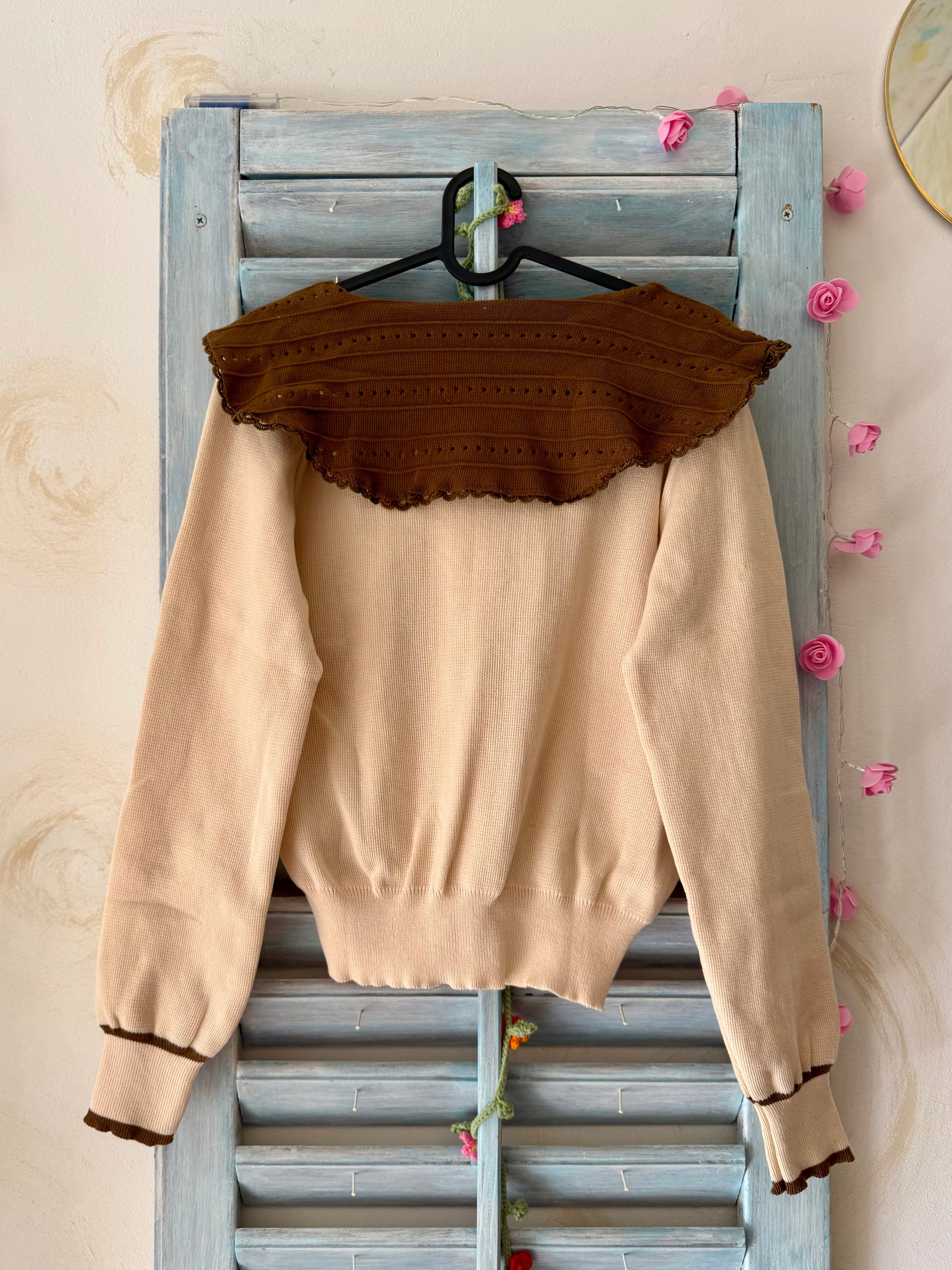 Petar Pan kragnom krasi se i ovaj jako rastezljivi pulover koji izvrsno upotpunjava svaki outfit.