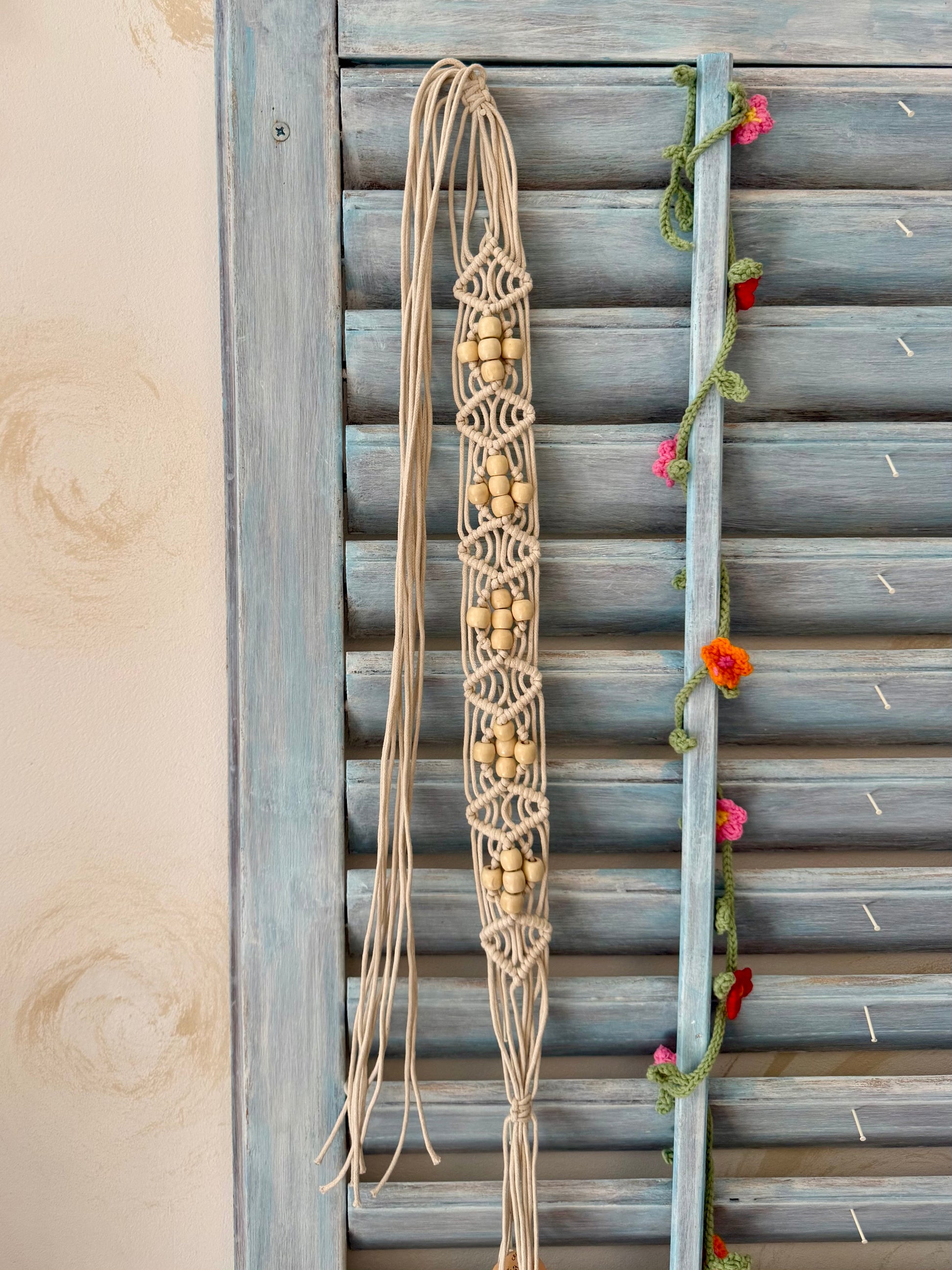 Macrame je remen izrađen od špage s drvenim perlicama.
